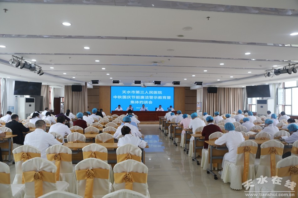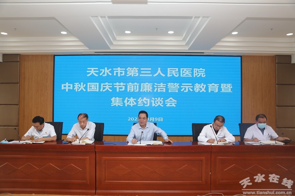 中秋、国庆将至,为进一步正风肃纪反腐,增强医务人员廉洁自律意识,9月9日上午,天水市第三人民医院召开廉洁警示教育暨集体约谈会。院党政领导班子成员、各科室主任、护士长、科秘书参加会议,党委书记丁志杰主持会议。