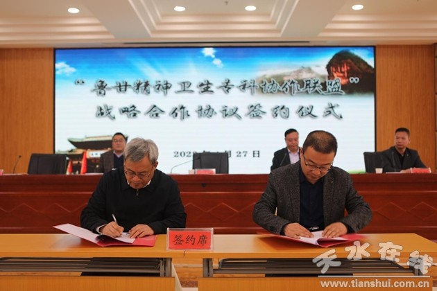 4月27日上午,山东精神卫生中心与天水市第三人民医院战略合作协议签约仪式在我院门诊楼12楼多功能会议厅举行。