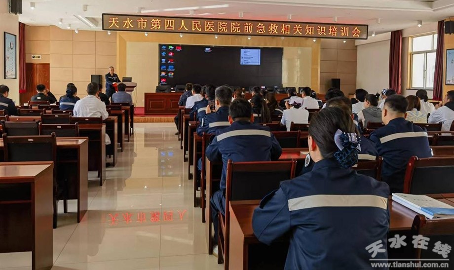 2023年10月10日,天水市紧急医疗救援中心院前急救科副科长柳炜及其团队,赴天水市第四人民医院开展了院前急救培训会议,会议内容紧密围绕2023年1月国家卫生健康委员会颁布的《突发事件紧急医学救援“十四五”规划》中的具体要求,建立健全紧急医学救援管理机制,全面提升紧急医学救援处置能力和收治能力等方面工作。天水市第四人民医院急诊医学科、急救分站调度室的60余名医护、调度人员均参加了此次会议。