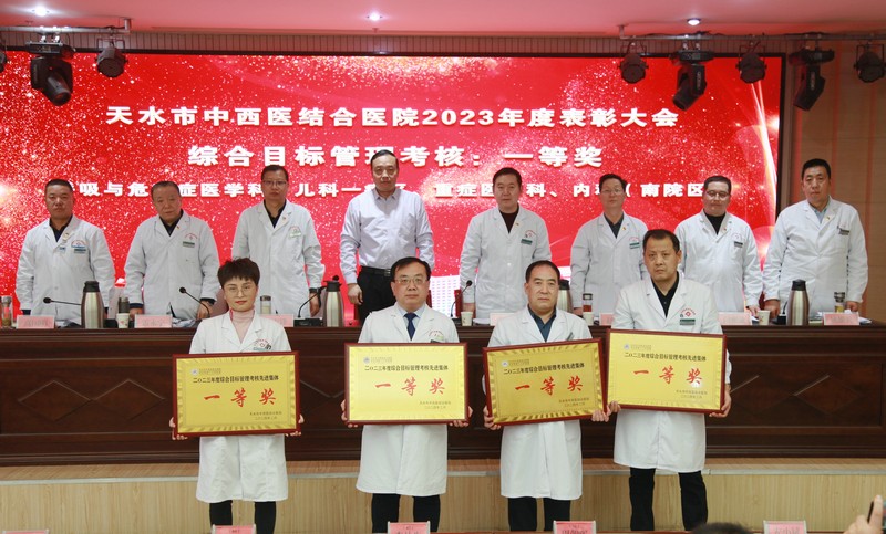 党委书记曹宝国对受到表彰的先进集体和个人表示热烈祝贺,对一年来辛勤耕耘的全院职工表示衷心感谢!要求全院干部职工坚持以习近平新时代中国特色社会主义思想为指导,深刻领悟“两个确立”的决定性意义,做到“两个维护”,巩固拓展主题教育和“三抓三促”行动成果,全面贯彻落实全国、全省、全市卫生工作会议精神。紧盯全面提升医疗质量、改善就医感受提升患者体验、推动护理事业高质量发展三大目标,持续加强党的建设、稳步推进医疗业务工作、加大人才引进培养力度、加强中西医结合内涵建设、深入开展“组团式”帮扶和“爱心甘肃”建设、夯实基础设施建设、提升后勤服务能力,持续优化服务流程、转变工作作风、提升服务品质,为全面做好2024年工作励精图治、再铸辉煌。