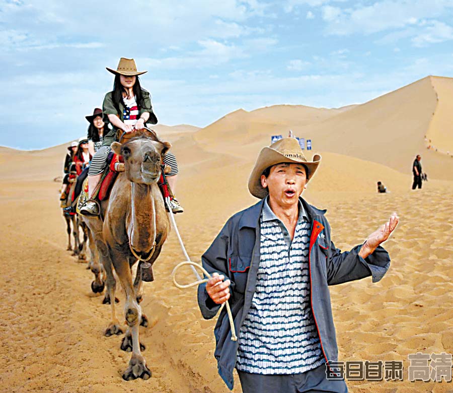 牵驼路上,“骆驼客”赵军唱起了动听的陕北民歌《赶牲灵》,为游客增添了游览观光的兴致。