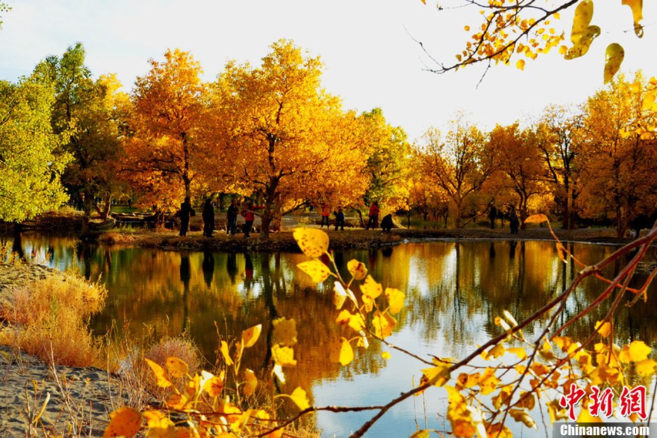 金秋十月,位于甘肃酒泉金塔县森林公园的胡杨林,金黄色的树叶与湛蓝的天空倒映在清澈的湖水中,如同美丽的油画一般,吸引了大批省内外游客纷纷前来赏景拍照。万宗平摄