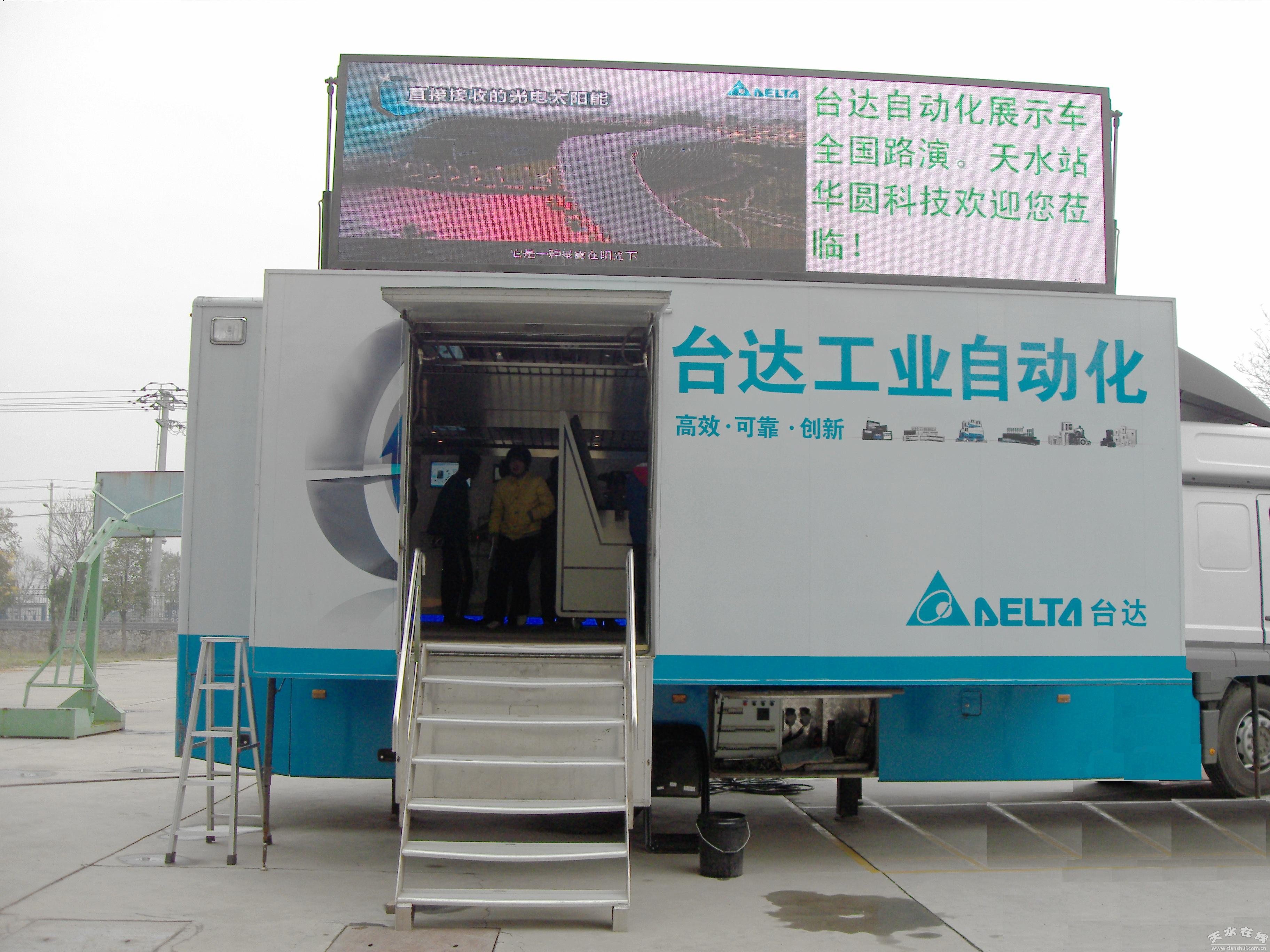 台湾台达电子集团工业自动化展示车日前开进甘肃省华圆科技技工学校校园,为在校学生讲授工业自动化、网络通讯等世界顶尖高科技技术应用。使学生更好地了解所学专业与工业自动化之间的渊源。