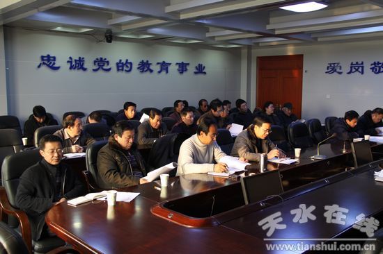 会上市招考办主任苟军林宣读了省招办《关于做好2010年甘肃省硕士研究生招生全国统一考试考务工作的通知》并传达了全省硕士研究生入学考试考务会议精神。招生科科长王红就今年硕士研究生入学考试考务工作进行了安排。市公安局、市保密局、市无线电管理处等部门的负责人对试卷的安全保密、考场周边环境治理以及防止利用无线电设备、网络进行作弊等方面分别作了安排部署。