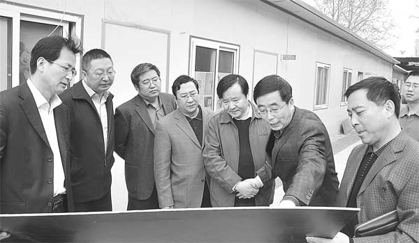 院长曹爱明(左二)陪同联合国工业发展组织国际太阳能技术促进转让中心主任喜文华(左三)参观校园