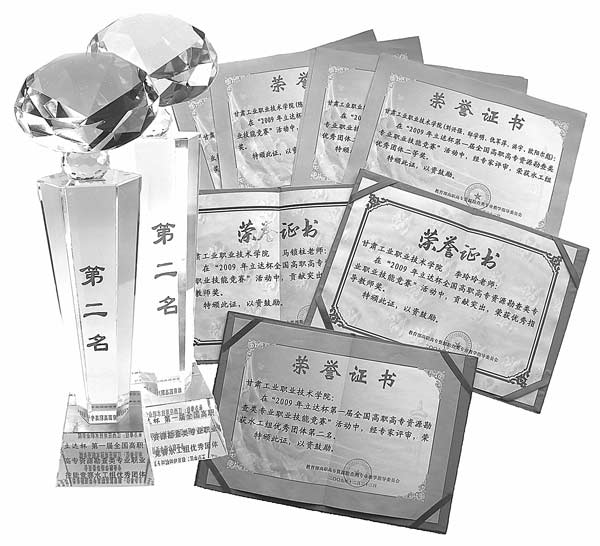 随后记者看到一组数据:2008年,甘肃工业职业技术学院获5项全国大奖,22项省级大奖;2009年获20项全国大奖,18项省级大奖,全年共获68项大奖……