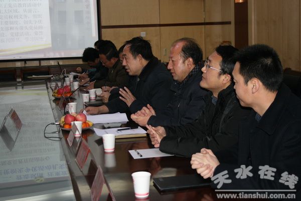 1月13日上午,省工信委工会主席马勃、人事处副处长史宏、技术创新处副处长上官毅一行3人莅临甘肃机电职业技术学院检查“创先争优”活动开展落实情况。甘肃机电学院党委书记、院长李宗义向检查组做了汇报,学院领导班子全体成员,党办、院办、党委宣传部、组织部、纪检监察室、工会、教务处等相关部门负责人参加了会议。