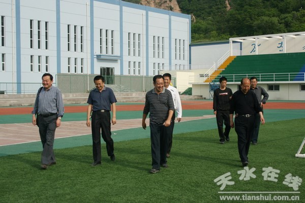 考察团一行在党委书记李宗义及相关部门负责人的陪同下,参观了田径运动场、体育馆、数控实训中心、网球场、在建家属楼等,听取了李书记关于学院基本情况的介绍。