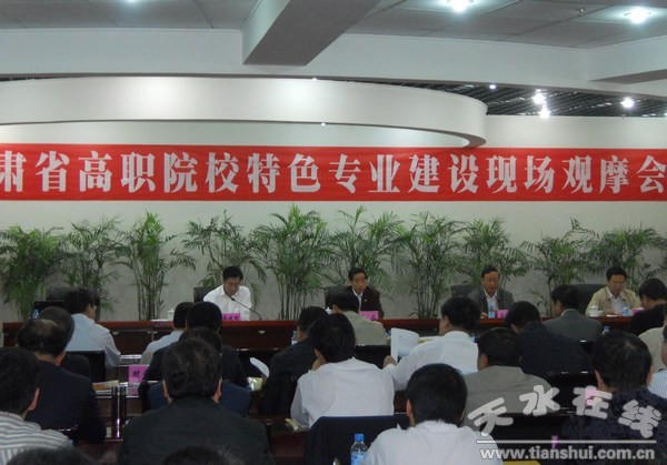 此次大会召开的目的是贯彻落实国家和甘肃省教育规划纲要,交流研讨我省高职院校在专业结构调整和特色专业建设上的做法和经验,进一步提升专业服务产业发展能力,大力培养适应甘肃经济社会发展需要的高端技能型人才。大会安排兰州石化职业技术学院等七所国家、省级示范院校进行了特色专业建设的经验交流。甘肃机电学院题为《优化专业设置结构 强化专业特色优势 全面提高教学质量》的特色专业建设材料在会议上也进行了交流。会后,各高职院校代表参观考察了酒泉职业技术学院实训基地。