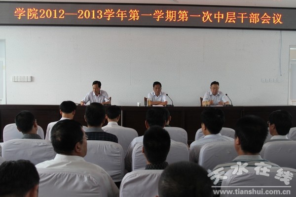 8月26日,甘肃林业职业技术学院召开2012-2013学年第一学期第一次中层干部会议,会议由学院党委书记朱勇虎主持。
