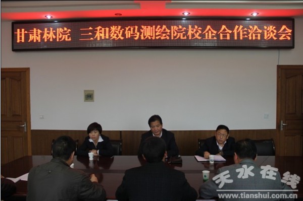 12月4日,甘肃林业职业技术学院与天水三和数码测绘院召开校企合作洽谈会,本次活动是由测绘工程系组织策划的。主要商讨该学院与天水三和数码测绘院合作事宜。天水三和数码测绘院院长陈重奎、副院长芦俊成、靳娟丽专程来甘肃林职学院参加洽谈,甘肃林职学院副院长冉福祥、招生就业处处长李惠峰及测绘工程系领导参加了会谈。