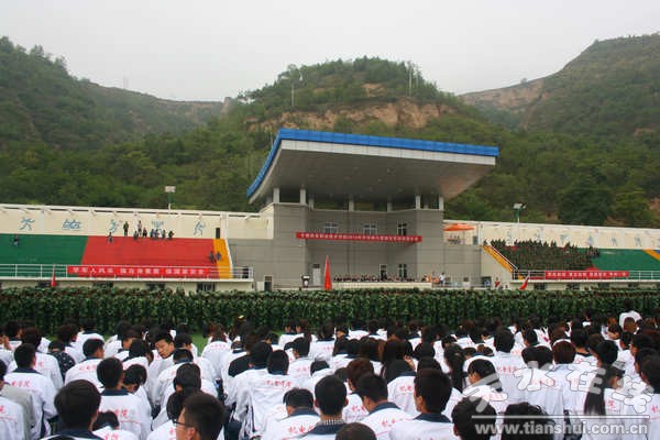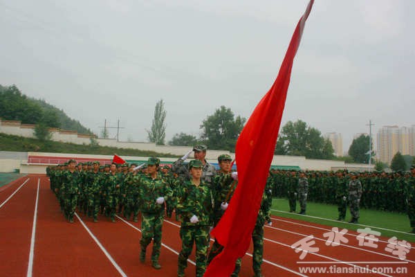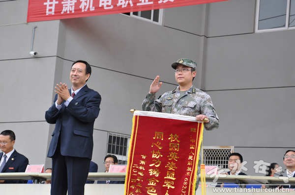 在庄严的升国旗仪式后,党委书记李宗义在部队首长的陪同下检阅军训学员方队;所有军训学员进行队列、军体拳、拉歌等军训课目表演;李书记向承训部队赠送了锦旗。