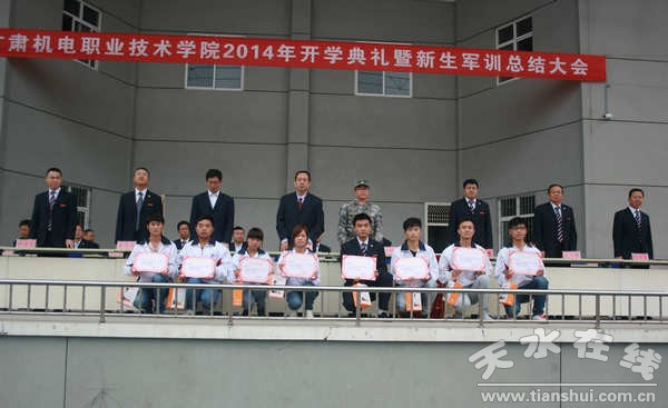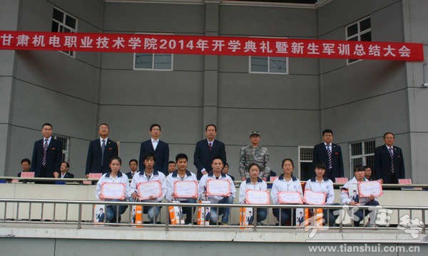 大会宣读了甘肃省“园丁奖”和天水市“园丁奖”获得者名单;表彰了2013-2014学年度先进班集体、优秀学生;2013-2014学年度顶岗实习优秀带队教师、优秀实习生;2014级军训优秀连队、优秀学员。学院领导与部队首长为受表彰的教师和学生代表颁发荣誉证书和奖品。教师代表和学生代表分别发言,部队首长讲话。