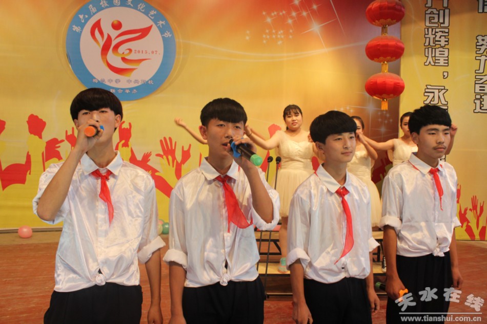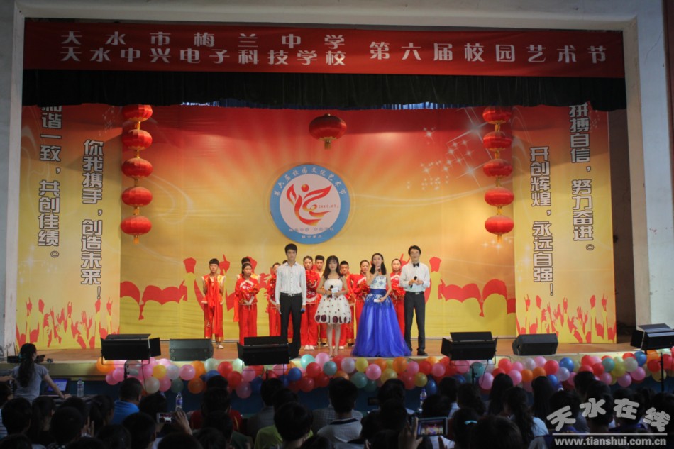 7月6日下午,天水市梅兰中学、中兴电子科技学校第六届校园艺术节落下帷幕,舞台上鲜花与笑脸相映,舞台下歌声与笑声齐飞,处处洋溢着庆祝校园艺术节的欢快气氛。节目由师生们自编、自排、自演,舞台上孩子们或歌、或舞、或弹、或说,台下欢呼声、喝彩声此起彼伏,场内成了欢乐的海洋。丰富多彩的艺术节活动,充分体现了时代人文素养,展现了莘莘学子朝气蓬勃的精神风貌,贯彻了党的十八大精神,践行了绿色教育的核心理念。