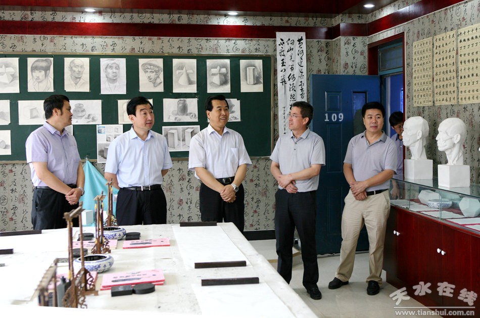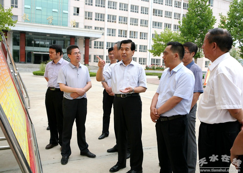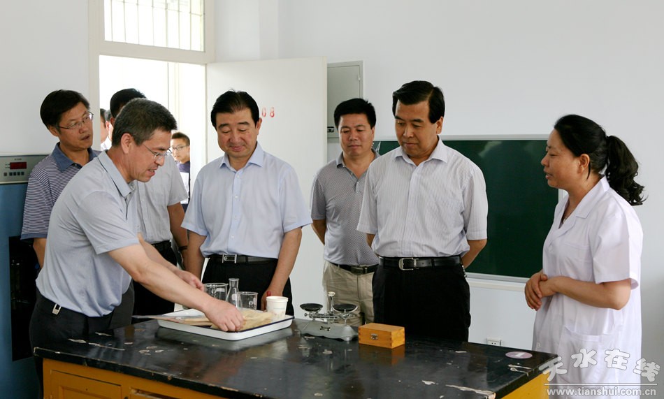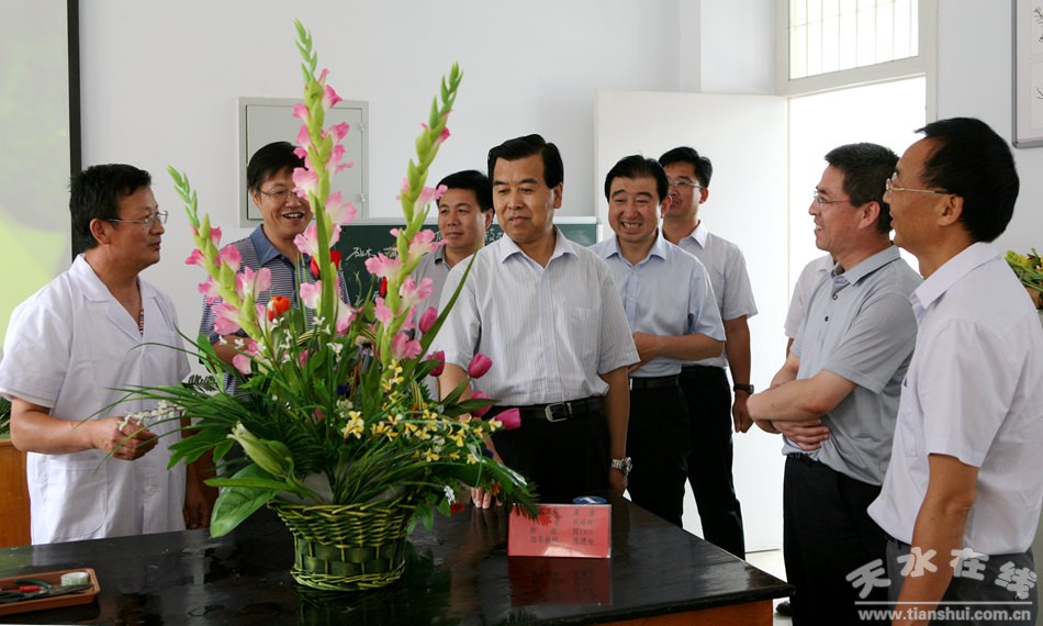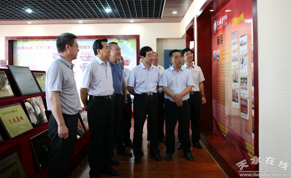 8月10日上午,甘肃省教育厅副厅长陈保平一行到天水农校就职业教育重点工作进展情况进行督查调研。天水市政府副市长霍卫平,市教育局副局长伏平,市农业局副局长杨焕煜,清水县委副书记、政协主席王新强一同陪同。
