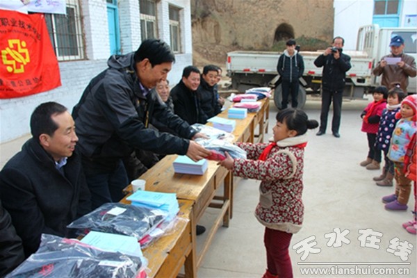 12月14日,甘肃林职学院副院长虎保成,党委组织部、办公室、团委负责人及果树技术培训教师前往学院“双联点”麦积区石佛镇涧沟、周半两个村,为双联村小学生送去温暖包,并对果农进行了果树技术培训。