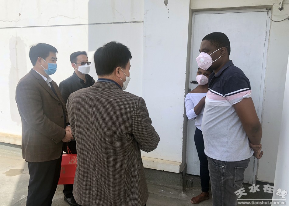 3月10日,天水师范学院校领导前往外籍教师和留学生公寓看望慰问疫情期间在校的外籍人士。