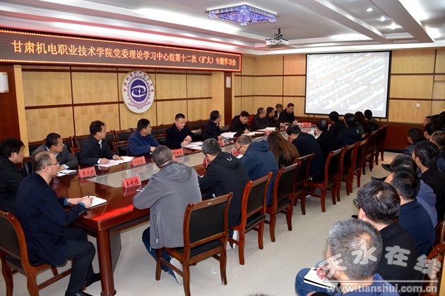 11月2日下午,甘肃机电职业技术学院召开第十二次党委理论学习中心组(扩大)专题学习会。会议由党委书记、院长坚葆林主持。在家院领导赵彦军、张德龙、毛文辉出席。各基层党组织书记及各部门主要负责人参加。
