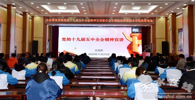 11月25日下午,全省教育系统党的十九届五中全会精神宣讲报告会在甘肃广播电视大学主会场召开,省委宣讲团成员、省委教育工委书记、省教育厅党组书记、厅长王海燕作宣讲报告。