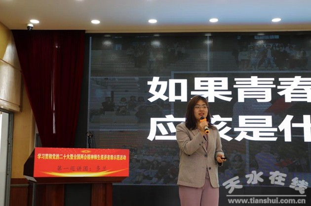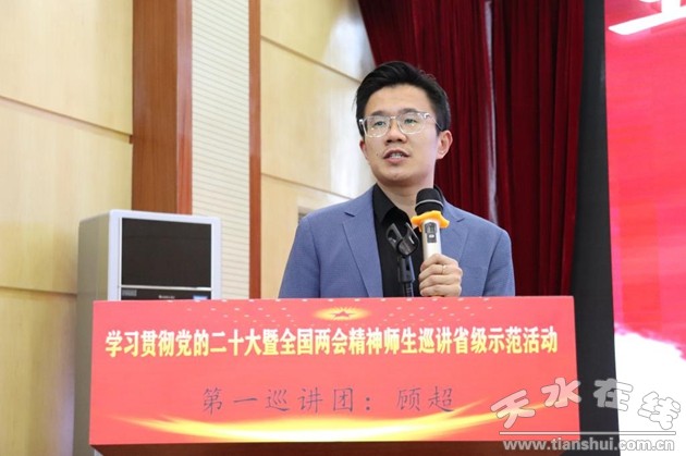 宣讲报告会上,第一巡讲团成员、甘肃省博士宣讲团成员、教育部高校思政工作创新发展中心秘书长、副研究员、兰州大学马克思主义学院教师顾超,兰州大学草地农业科技学院本科生、甘肃省青马宣讲团成员多兰分别作了专题辅导。