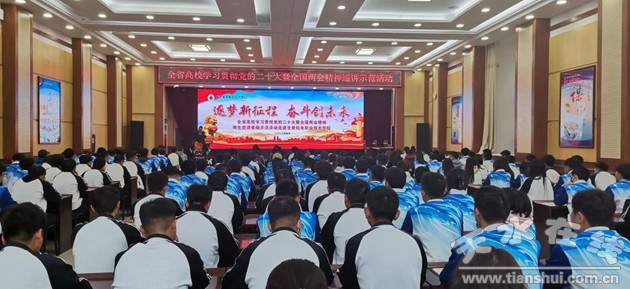 感悟思想伟力,凝聚奋进力量。4月21日下午,全省高校学习贯彻党的二十大暨全国两会精神师生巡讲省级示范活动在我校举行。学校200余名师生代表参加。宣讲活动由党委委员、副院长张德龙主持。