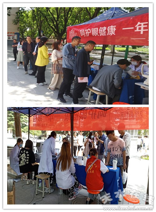 为关注广大师生眼健康,增强爱眼护眼意识,6月9日,学校工会联合天水爱尔眼科医院在南区中心花园共同举办宣教义诊活动。
