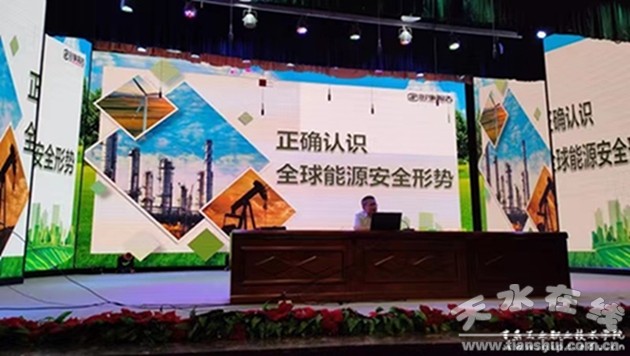 为深入学习贯彻党的二十大精神,落实“三抓三促”行动,激发和培养学生勇担使命的社会责任感,6月14日晚,甘肃工业职业技术学院副院长王利军在大学生活动中心开展了《形势与政策》专题讲座。此次讲座以《正确认识全球能源安全形势》为主题,建筑学院、地质学院2022级全体学生参加。