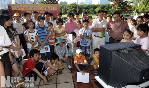 7月22日,海口市民在观看电视转播的日食节目。当日,我国出现了500年一遇的大日食奇观。海南不能观测到日全食,只能观测到日偏食。由于月球遮住太阳的面积较大,这次仍将是海南历史上罕见的日偏食。