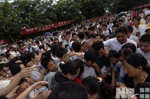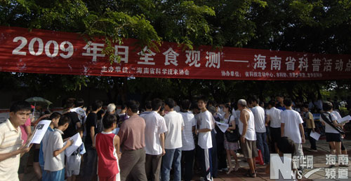 7月22日,海口市民在观测点争相领取观测眼镜。当日,我国出现了500年一遇的大日食奇观。海南不能观测到日全食,只能观测到日偏食。由于月球遮住太阳的面积较大,这次仍将是海南历史上罕见的日偏食。