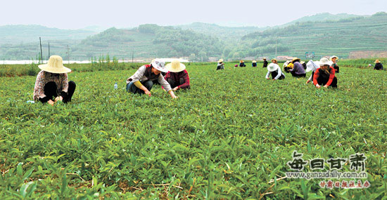 西和县何坝镇马寨村群众在为田里的半夏除草。目前,西和县半夏种植面积达到1.28万亩,产值过亿元,种植半夏成为西和农民增收致富的新路子。本报通讯员 冉创昌