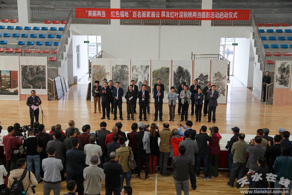 之后举办了“美丽两当、红色福地”百名画家画云屏及红叶深秋映两当摄影活动,两当县特邀了百名书画家现场作画,现场为“甘肃省摄影家协会两当兵变红色景区摄影创作基地”揭牌。