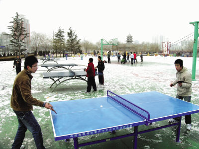 尽管市区雪下得不大,但久违的雪花还是给人们带来了惊喜。12日早晨,记者在雁滩公园看到,和往常一样,不少市民早早地就出来锻炼了。王大爷告诉记者,下雪了,空气好,他比平时还早了半个小时出门,为的就是能多呼吸一些新鲜空气。公园湖面结成了天然“滑冰场”,许多孩子在上面玩耍嬉戏,享受着雪中滑冰的乐趣。随后记者又来到体育公园,看到一群学生,有打乒乓球的,有打篮球的,一派热火朝天的景象,他们享受着运动的乐趣。