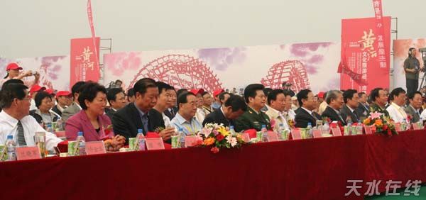 出席开幕式的领导同志有,陆武成、洛桑灵智多杰、张津梁、李乾元、左宗国、傅永照、张开勋、王志贵、哈全玉、左灿湘、兰晓军以及中国文化报社社长兼党委书记孔繁灼,中国群文学会会长郭沫勤,全英华人经济研究会副会长刘阿英,蚌埠市市长张学群,平凉市市长陈伟,庆阳市市长周强,香港民航国际投资公司总裁卢保国,中国机械进出口总公司副总经理粱斌等。