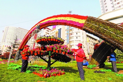 城关区建设局还给绿化带的栅栏穿上了新装。尤其是黄河风情线全都换成了绿白相间的塑钢栅栏。截至目前,已经完成东岗东路、天水中路、盘旋路、南关十字等路段约2.5万米的栅栏更换工作。此外还为配合各种绿色雕塑美化效果,区建设局在酒泉路、城关黄河大桥、南昌路上装了156套装饰花篮试点,待试点成功后,还将在庆阳路完成100个花篮的改造。另外,该局在部分重点路段摆放了40万余盆各式各样的鲜花,使这些重点路段形成多层次、多色彩、多品种的立体化园林景观效果,用绿色点亮金城。