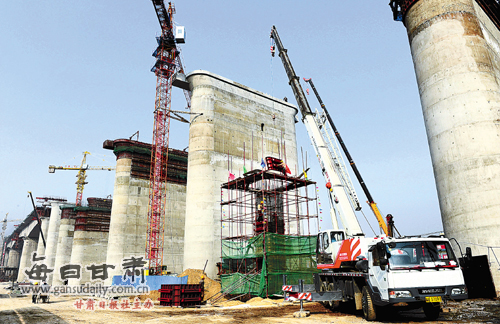 11月5日,兰渝铁路兰州枢纽大砂坪特大桥工程建设正在紧张进行。该大桥全长1546米,东西两头分别跨109国道和连霍高速公路,是兰渝铁路兰州枢纽控制性工程之一。截至目前,该大桥桩基部分已全部完成,桥面铺设工程有序进行。本报记者 高樯 摄