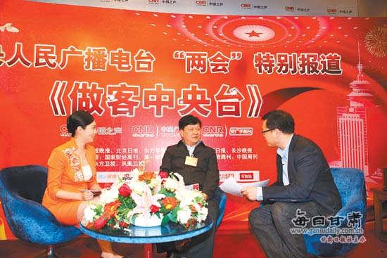 十二届全国人大代表、省委常委、兰州市委书记虞海燕(中)接受中央媒体采访。