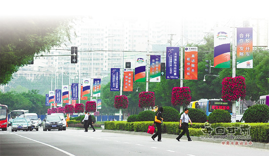 形式简洁。组委会不在各类活动会场张贴悬挂标语横幅,力求会场简洁明快,突出服务广大企业和客商投资贸易洽谈的功能。