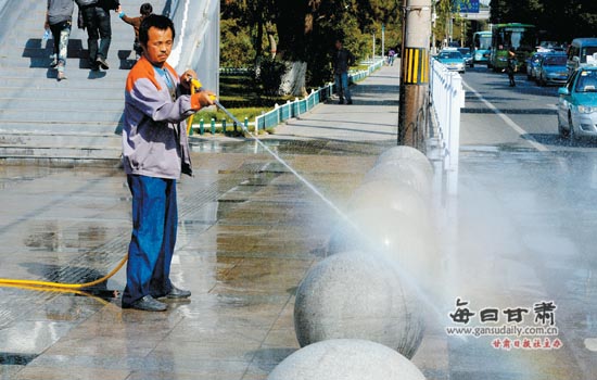 昨日兰州市“全民洗城”集中行动首次展开