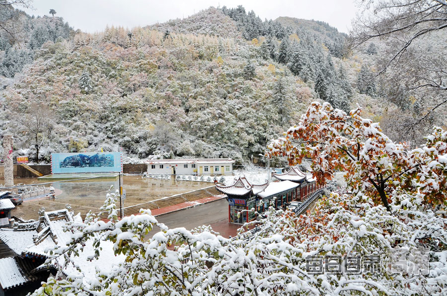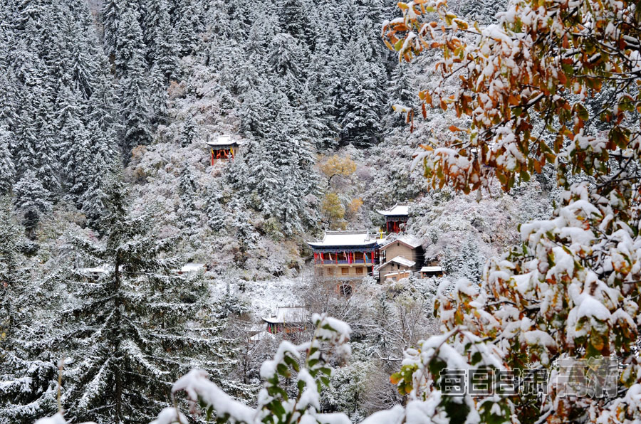 榆中迎来秋雪 兴隆山景区红叶秋雪交织(组图)
