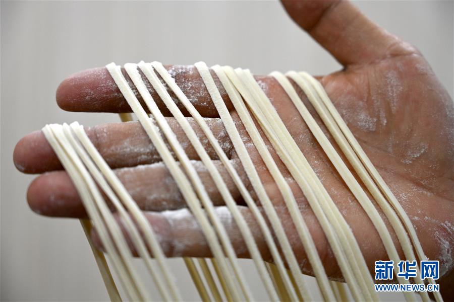 在兰州市一家牛肉面馆内,牛肉面师傅在整理面团(4月2日摄)。 兰州牛肉面是“中式三大快餐”之一,拥有百年历史。它以“一清(汤清)、二白(萝卜片白)、三红(辣椒油红)、四绿(香菜、蒜苗绿)、五黄(面条黄亮)”的特色而蜚声中外。经过反复揉搓的面团在牛肉面师傅手中变化成粗细不一、圆扁不同的十余种面型。决定牛肉面味道的关键是浇在面条上的“老汤”,各个店家都有自己独特的汤料配方。从下锅煮面到端上餐桌,短短几分钟,一碗热腾腾的牛肉面便制作完成。冒着热气的汤面搭配各色辅料让食客唇齿留香,受到广泛欢迎。 新华社记者刘洁摄
