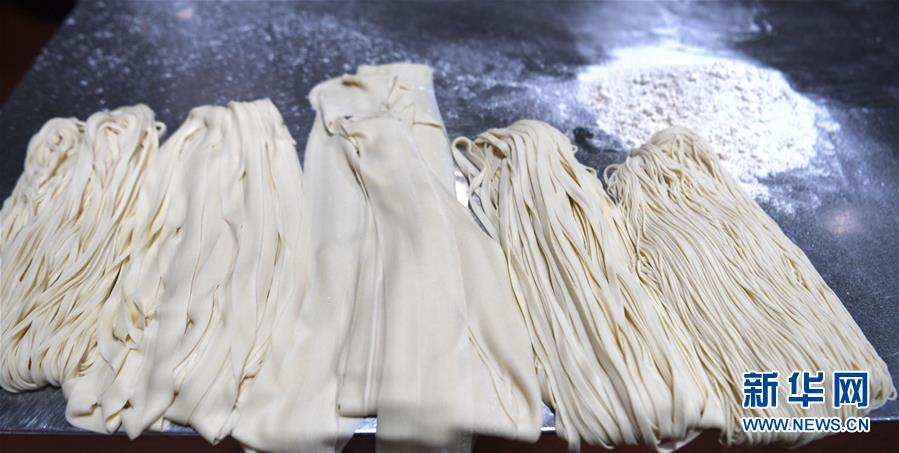 这是在兰州市一家牛肉面馆内拍摄的不同粗细的面条(4月2日摄)。