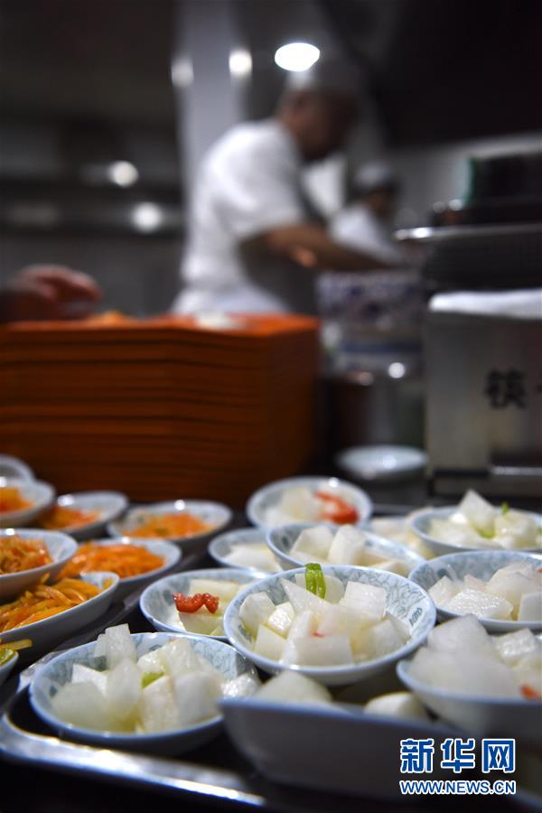 这是兰州市一家牛肉面馆后厨准备的小菜(4月2日摄)。