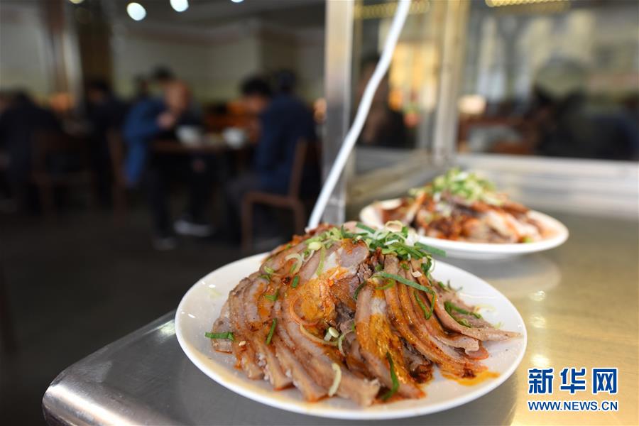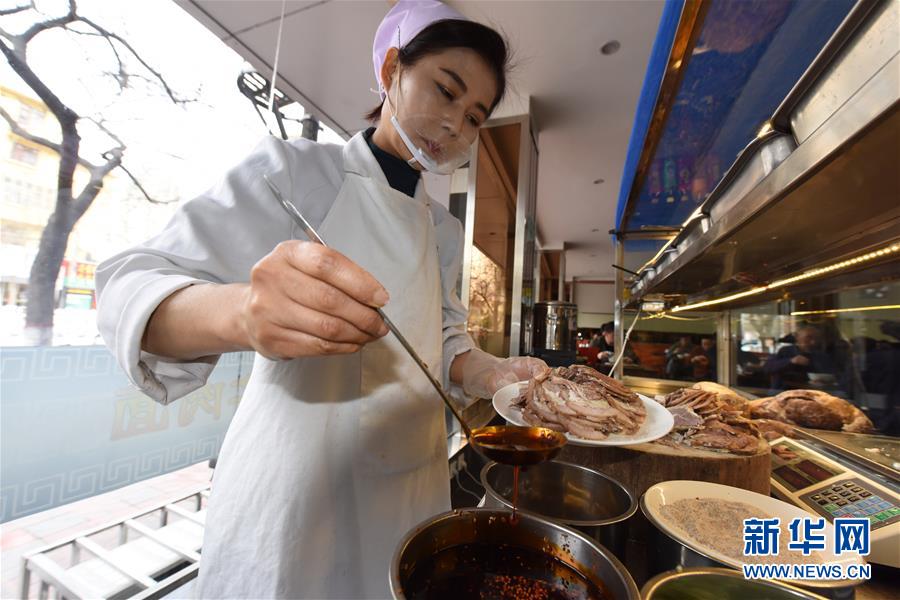 在兰州市一家牛肉面馆内,工作人员在加工售卖小菜(4月2日摄)。