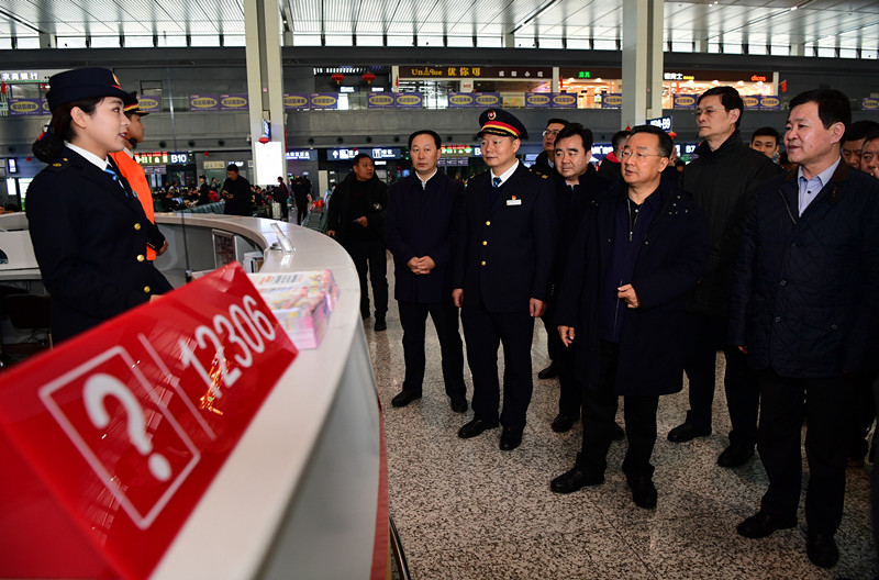 兰州西站是我省规模最大的铁路客运站。唐仁健走进候车室,详细了解安全责任制落实、旅客疏散疏导、车站扶贫产品销售等情况。他强调,要调配好元旦春节期间运力供给,加强客流监测和信息发布,切实做好群众出行保障工作。要制定应对恶劣天气、设备故障、客流激增、延误晚点等突发事件的应急预案,确保能及时有效处理。在旅客咨询服务台,唐仁健拿起“温馨服务联动卡”,详细询问针对老幼病残孕等旅客出行开展的各项服务。他说,兰州西站是展示兰州形象的重要窗口,服务台就是车站的“第一窗口”,要恪尽职守、勤奋工作,努力为广大旅客安全出行、方便出行、温馨出行提供高质量的服务,不断提升群众满意度。