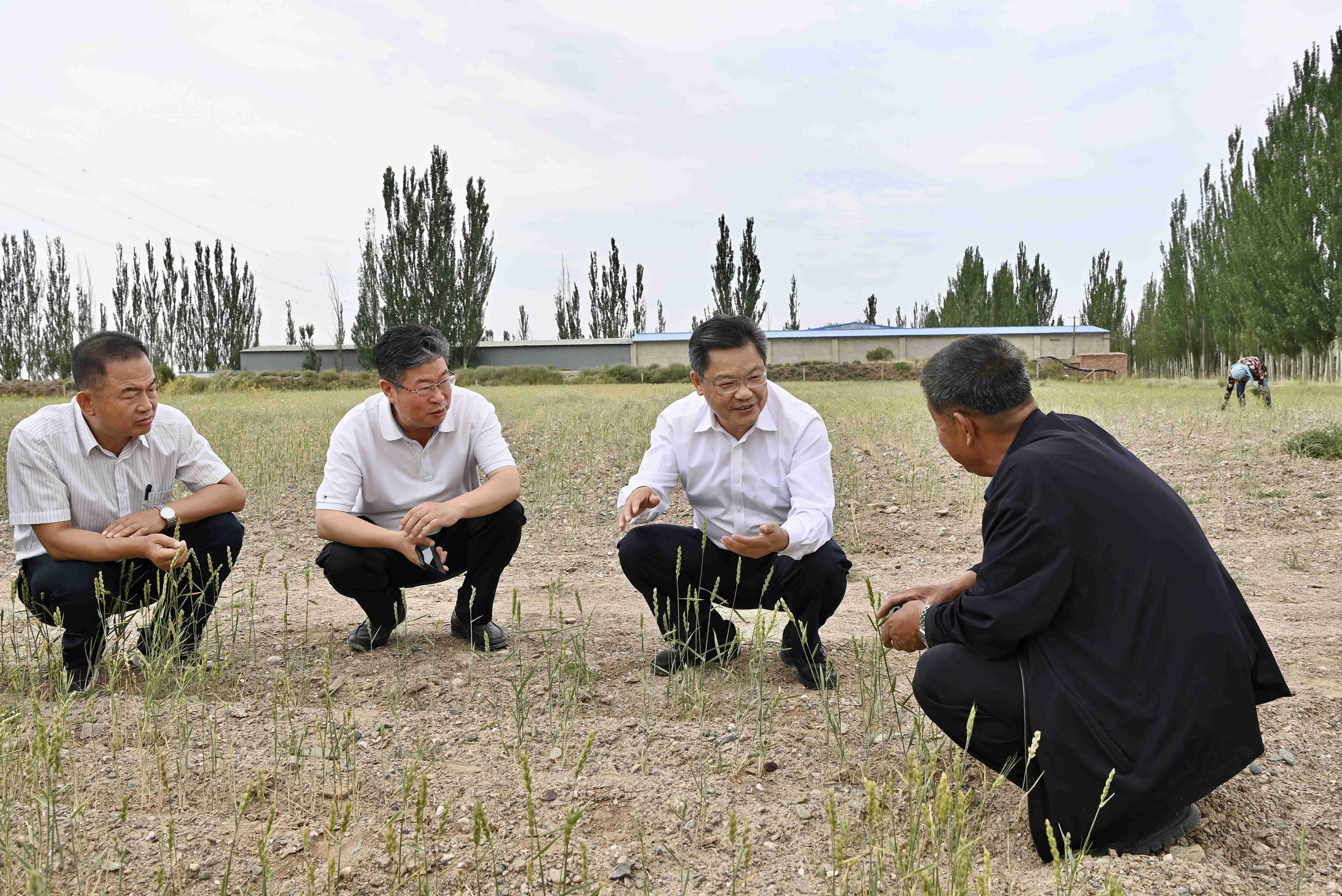 省委副书记、省长任振鹤7月1日来到兰州市永登县调研抗旱减灾工作。他强调,要深入贯彻习近平总书记关于防灾减灾救灾的重要指示精神,深刻认识做好当前抗旱减灾工作的重要性紧迫性,立足粮食安全和人民幸福这个“国之大者”,着眼巩固拓展脱贫攻坚成果,树牢底线思维、增强忧患意识,密切关注旱情、加强预测预判、防止旱涝急转,把困难想得多一些、把措施落得实一些、把工作做得细一些,精准施策抓抗旱、防汛情,全力以赴守底线、促发展,以实际行动迎接党的二十大胜利召开。