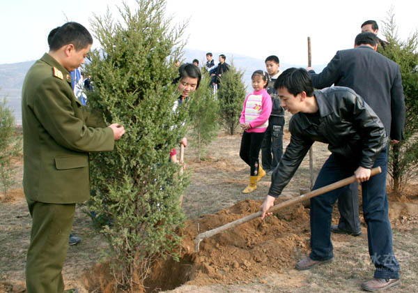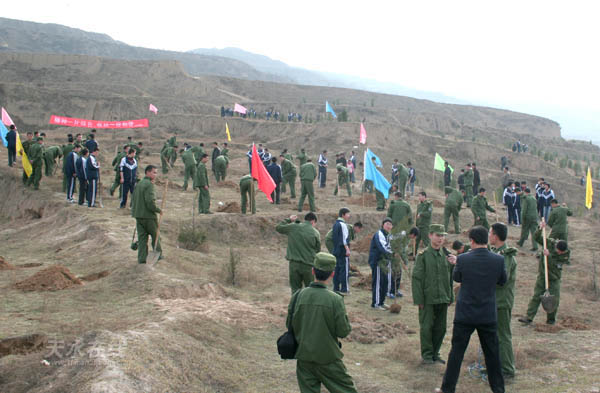 播种一片绿色,收获一份和谐。3月16日,由麦积区团委组织的“大手拉小手,共建青年林”活动正式启动。当天,由96363部队的青年官兵与市二中的部分学生共200多名青年团员组成的义务植树小组,以“一对一”结对的形式,在东泉南山的军地共建青年林植树点义务植树500多棵,共同建成该区第一片军地共建青年林。