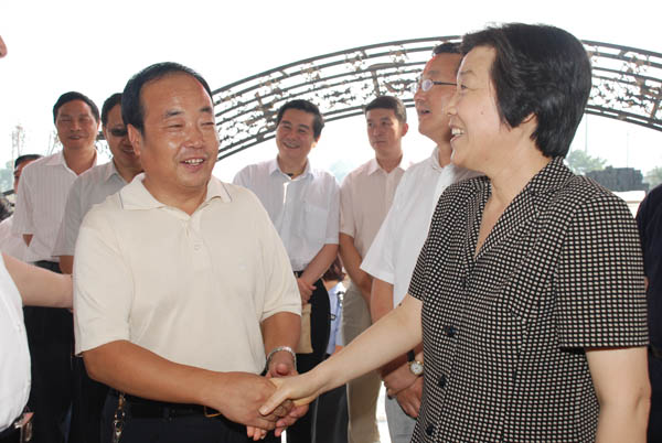 麦积区委副书记、区长张克强和吴爱英部长握手