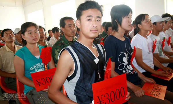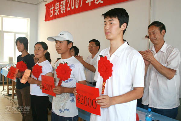 本次活动由甘泉镇政府倡导发起,旨在促使全镇上下形成尊师重教、捐资助学和“关爱女孩”的良好风尚。活动一经发起,就受到了社会各界人士的大力支持和积极响应。从甘泉走出来的一些有一定影响的企业公司老板纷纷率先带头、慷慨解囊,为家乡的教育事业奉献自己的一片爱心。当天受到爱心资助的19名优秀贫困生都是经过本人申请、村委会初审、镇上入户审查、张榜公示等程序严格筛选出来的。在当天的活动仪式上,区上领导分别为优秀贫困生颁发了助学金。今年中考成绩优秀的胡会会等3名同学各领到资助现金1000元;高考考入普通院校的季东东等10名同学各领到资助现金1500元;高考考入重点院校的夏兵等4名同学各领到资助现金2000元;高考考入四川大学的谢兵兵和考入南京信息工程大学的周丽花同学各领导到资助现金3000元。另外,该镇还决定对在宁夏理工大学就读并患有严重疾病的贾瑞龙同学从“捐资助学”资金中资助现金3000元。