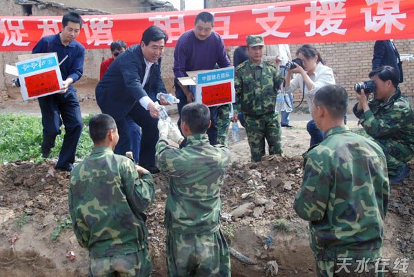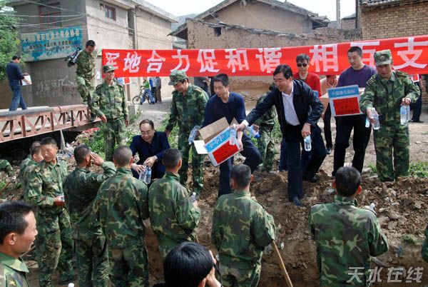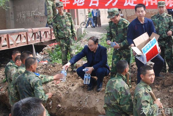 天水在线讯 5月10日,天水市委、市政府领导赴麦积区慰问道北东排洪渠清淤清障工程的驻地官兵。