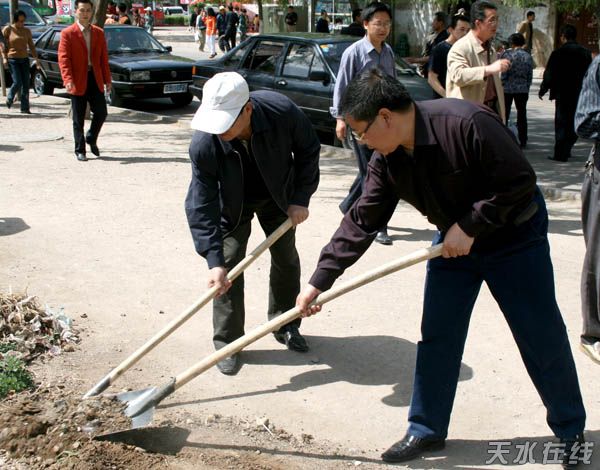 5月9日下午,麦积区“三城联创”环境集中整治日活动全面展开。当天,区四大组织在家领导与干部、群众万余人一起走上街头,挥动扫帚、铁锨等工具,对城区和城郊路段的死角垃圾进行了一次全面彻底的清扫和整顿,城市面貌扮靓一新。